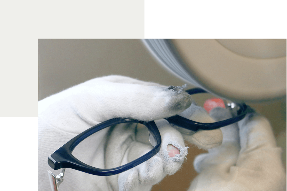 200程の工程を経て完成されるめがねは「かけ心地が良く簡単に壊れない」事が重要とされています。